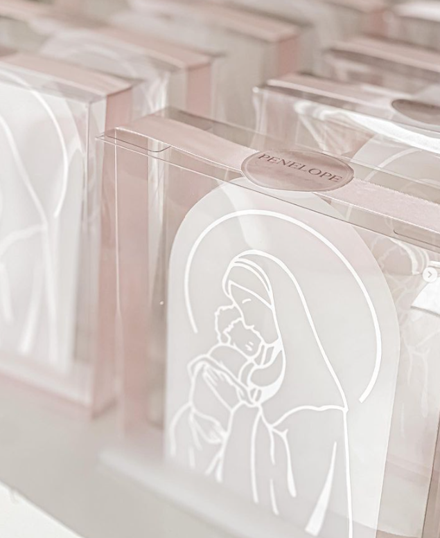 Gold Mother Mary Rosary Acrylic Box Bomboniere